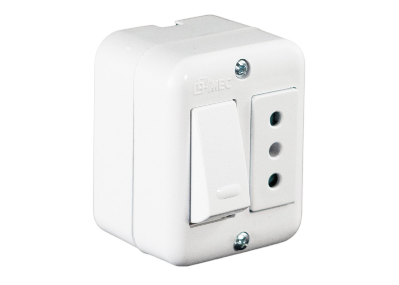 Interruptor 9/12 + Toma corriente 2P+T 10A 250V AC blanco sobrepuesto Aris MEC