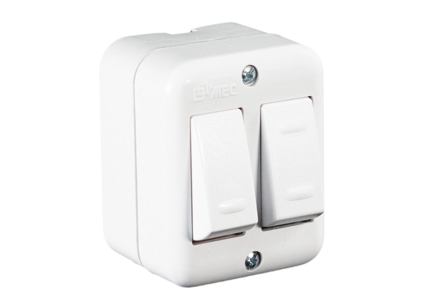 Interruptor doble 9/15 10A 250V AC blanco sobrepuesto Aris MEC